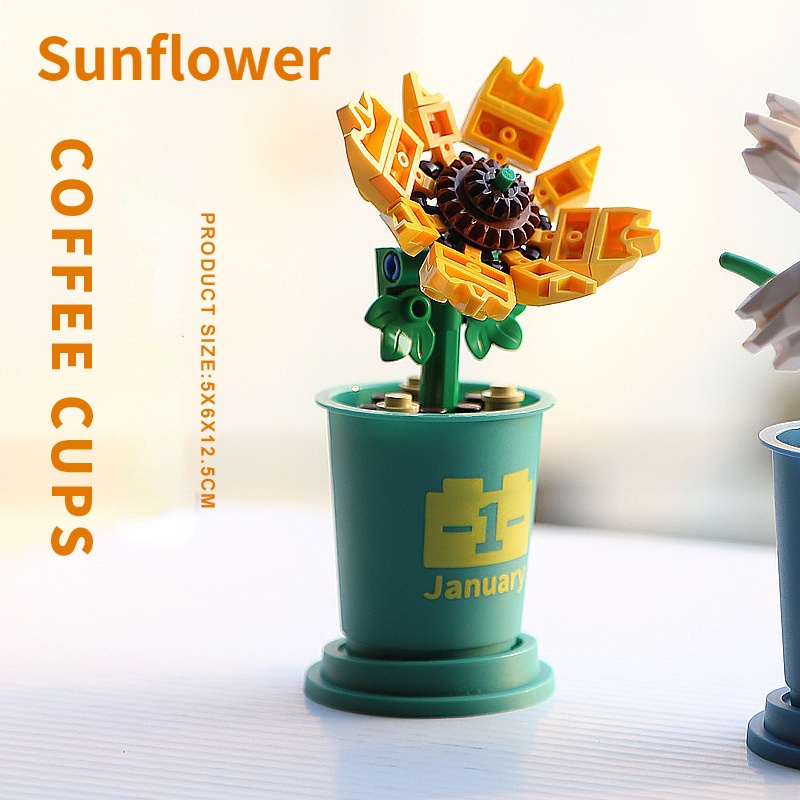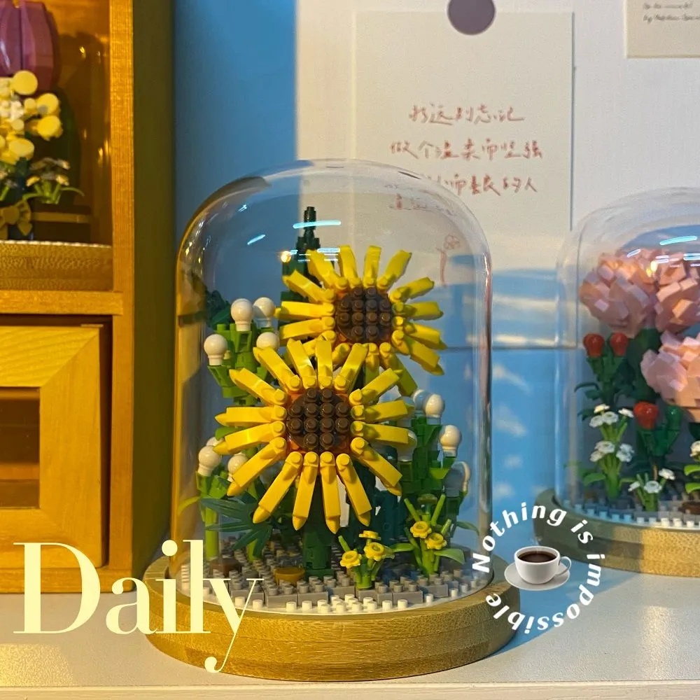 ตัวต่อดอกไม้ DIY ดอกทานตะวัน พร้อมฝาครอบ
