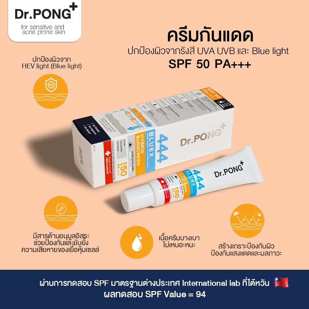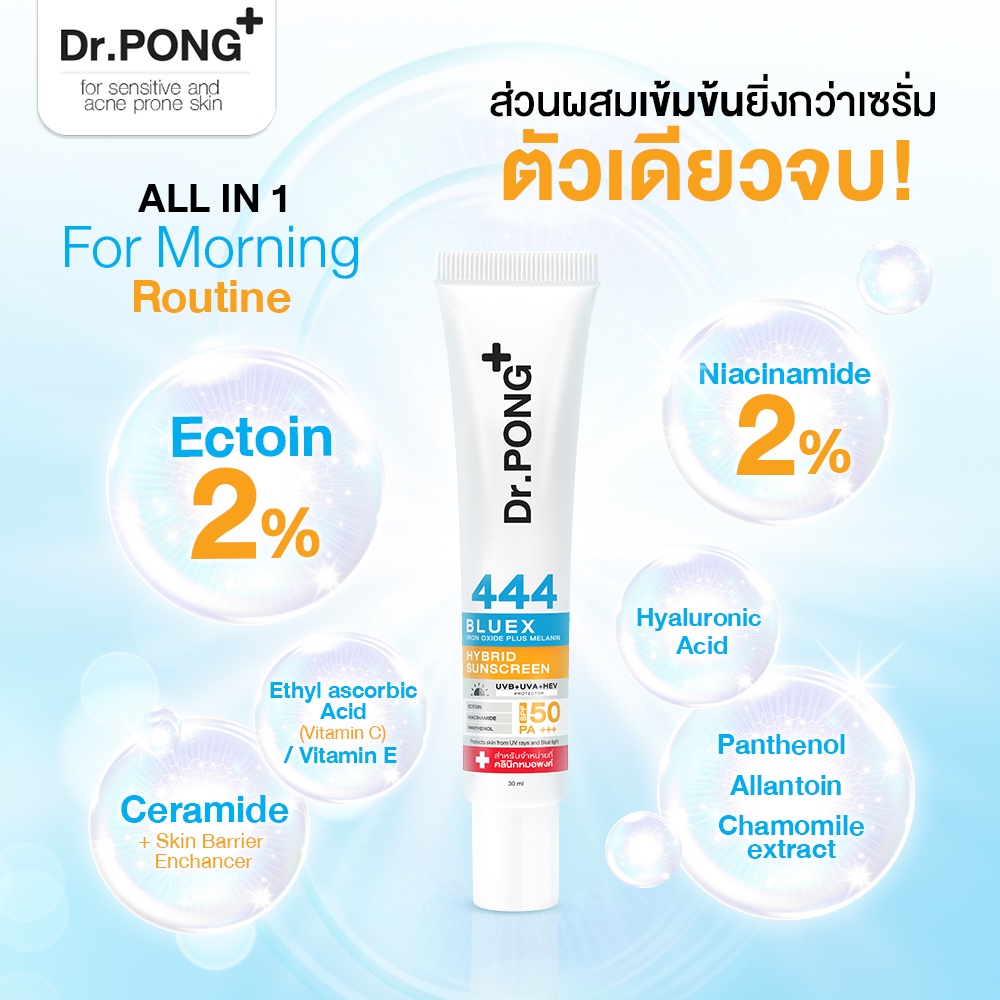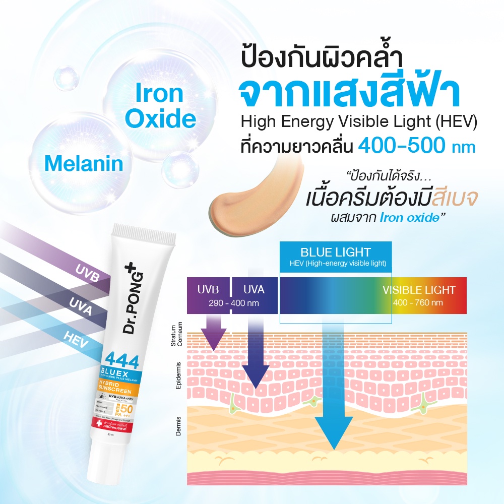 Dr.PONG 444 BlueX iron oxide plus melanin hybrid sunscreen SPF50 Ectoin Niacinamide ครีมกันแดดป้องกัน